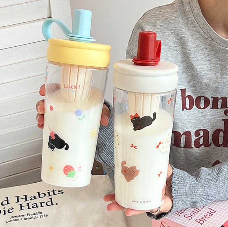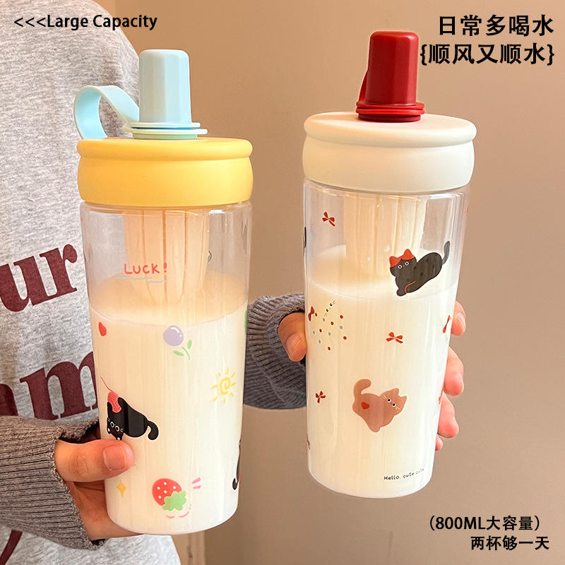 800ml Double-Compartment Plastic Water Bottle for Women Portable Tea Maker Cup Straw Motivator for Drinking Powder Coated