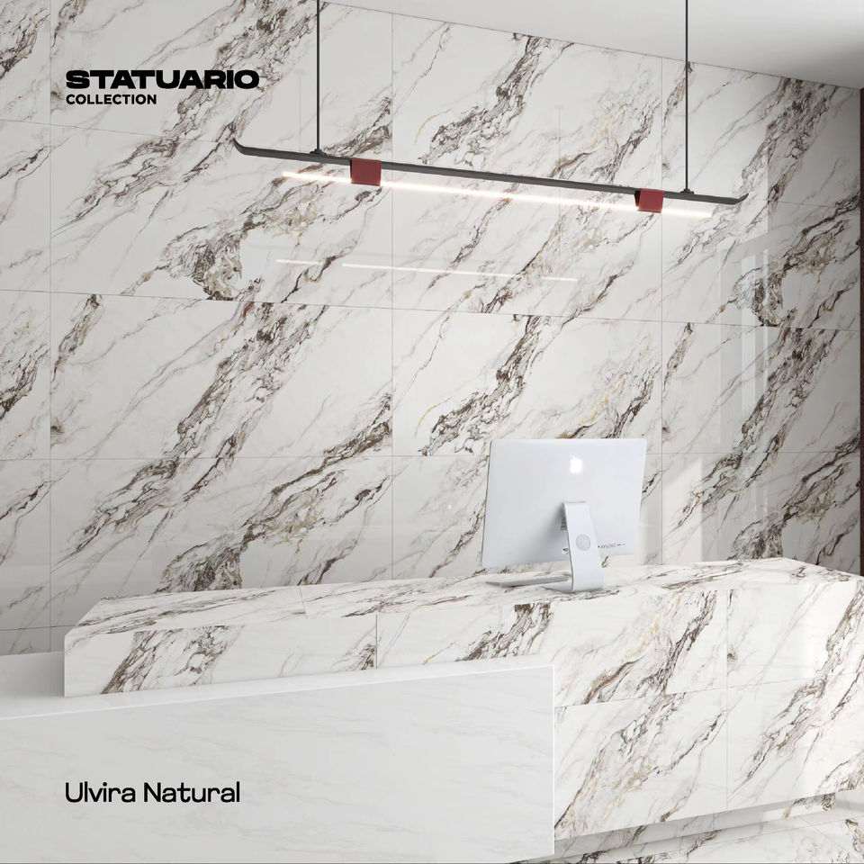 800x1600mm Glossy Statuario Porcelain Tiles GVT PGVT Vitrified Marble Look Floor and Wall Tiles for Elegant Interior Spaces