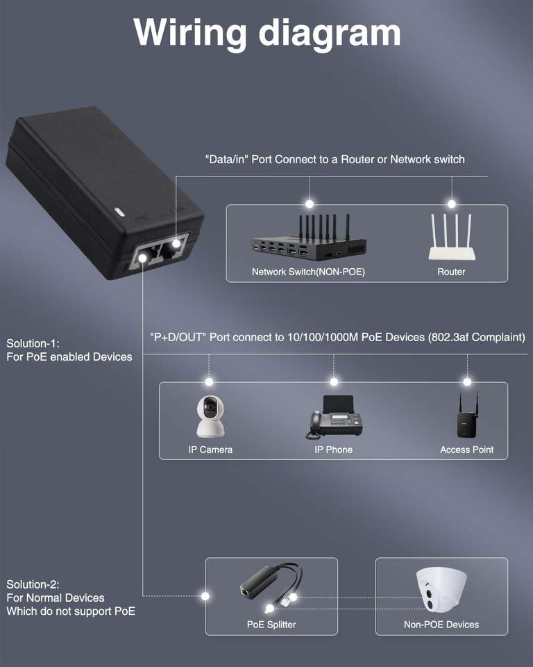 Injecteur PoE 802.3at 802.3Af 48V 0.5A Micro-USB, Adaptateur d'alimentation IP Gigabit Ethernet 10/100/1000Mbps Passif DC pour Ordinateur de Bureau
