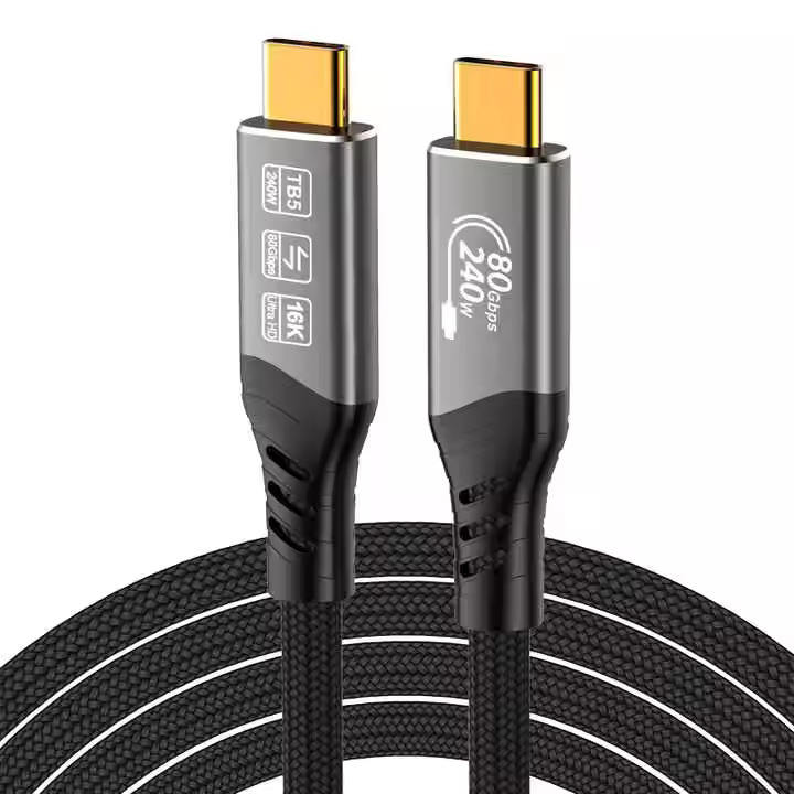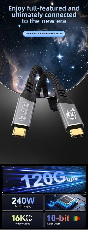 Câble Thunderbolt 5 80Gbps 16K/60Hz avec une bande passante allant jusqu'à 120Gbps et une charge de 240W, compatible avec USB4, USB3 et USB-C