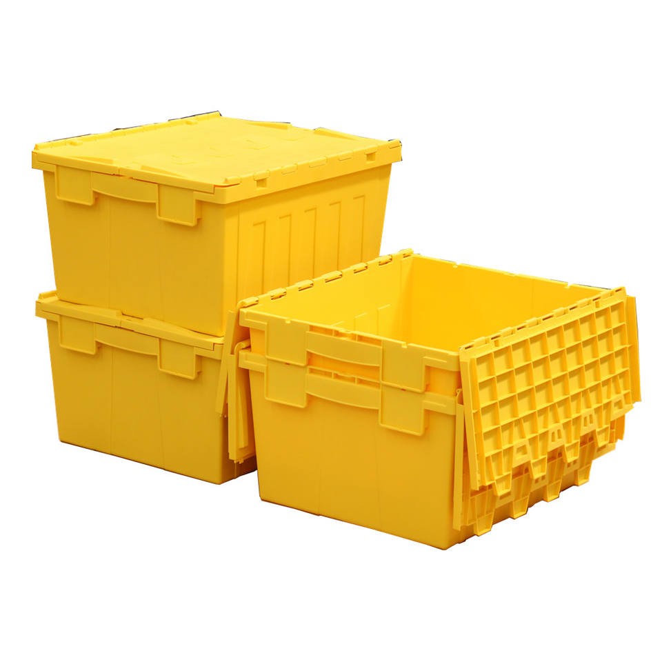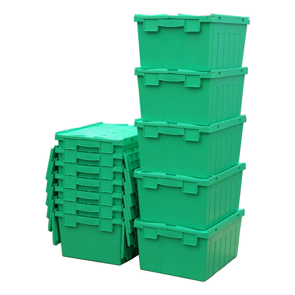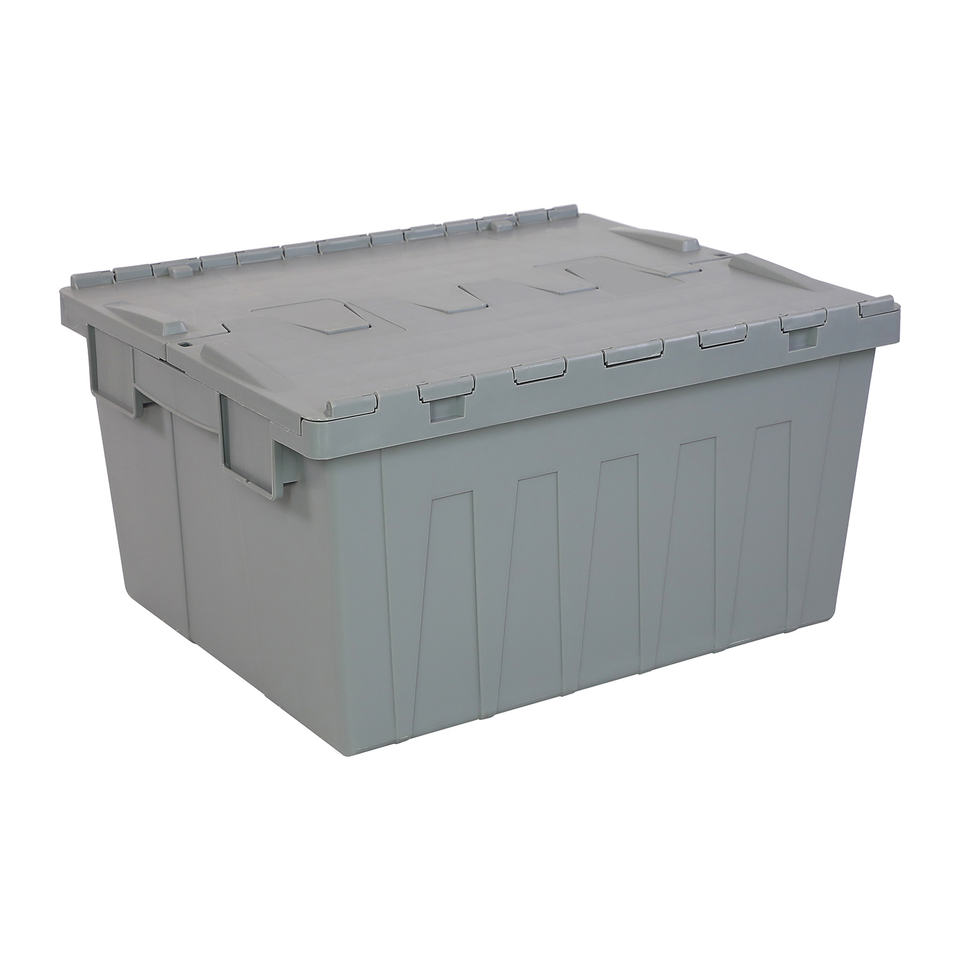 Boîtes de rangement en plastique robustes de grande taille 80L pour entrepôt et déménagement avec couvercle intégré