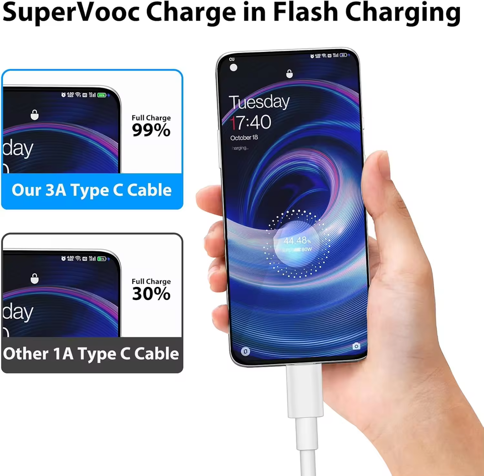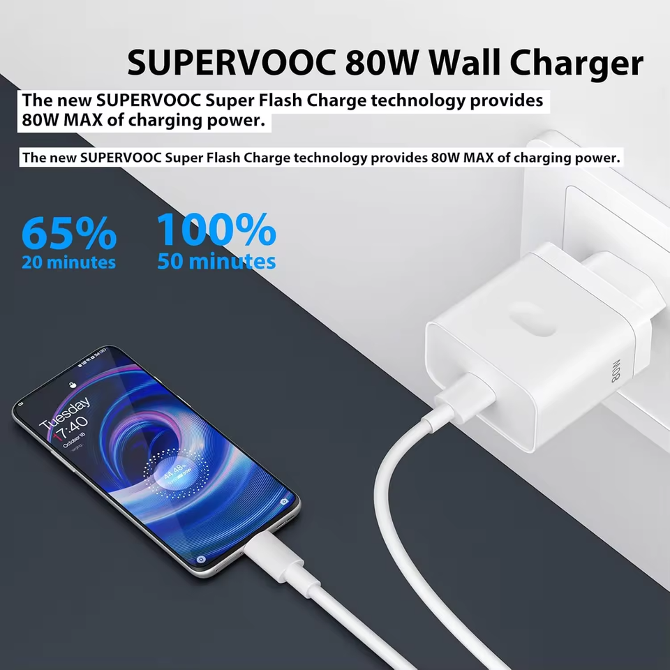 80W Fast Charger with USB Cable for Oppo Supervooc Charge 80W Quick Charging for OPPO A6 Pro/A6 GT/Find X5 Pro X5 Neo X3 Reno 11