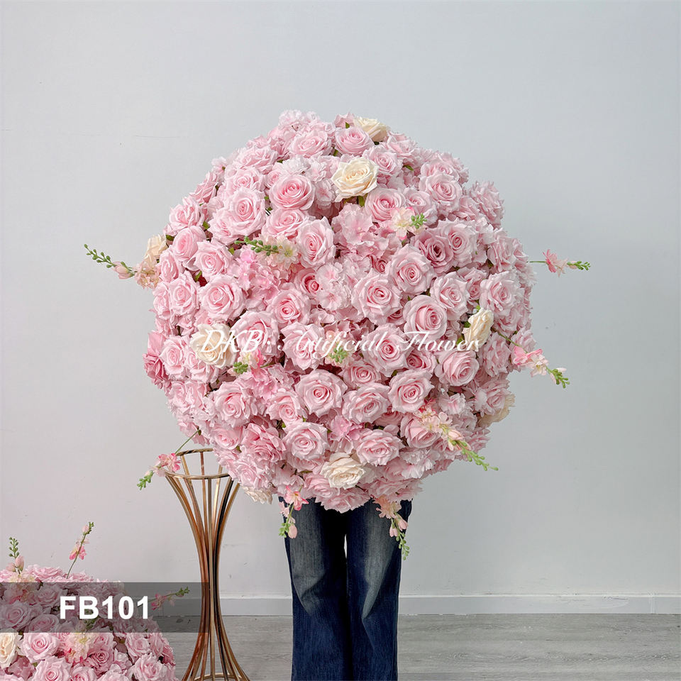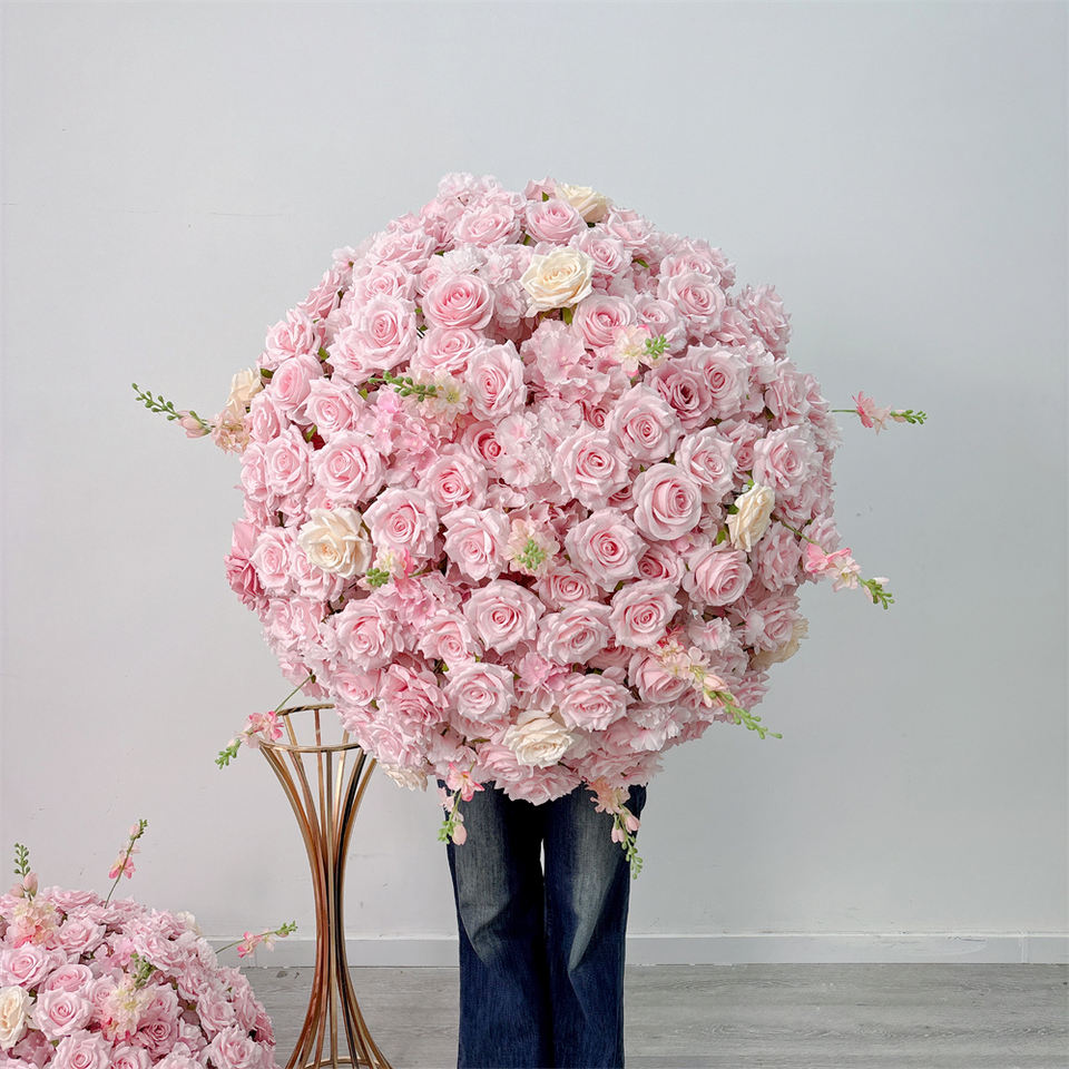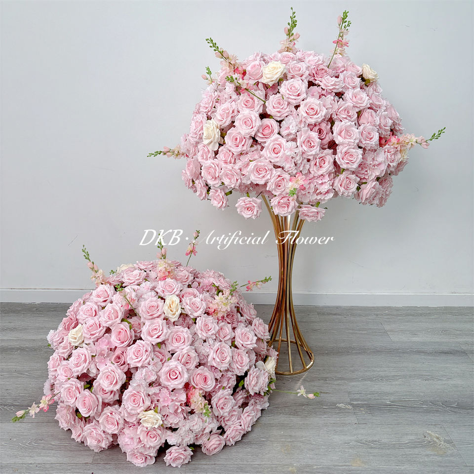 Boule de fleurs de rose rose de 80 cm, vente chaude, décoration de mariage, fleurs artificielles en soie, toucher réaliste, centre de table pour décoration de table