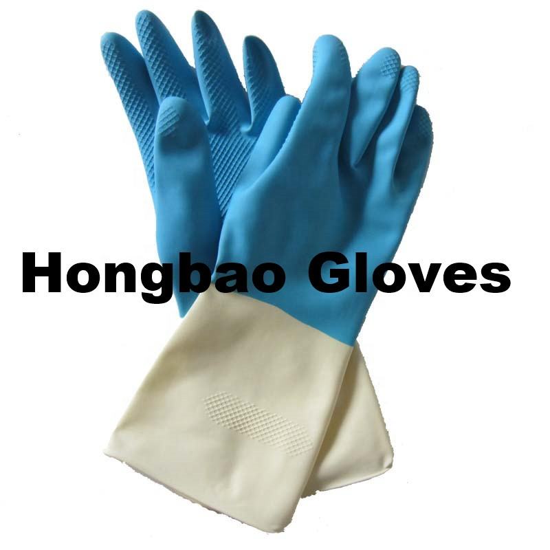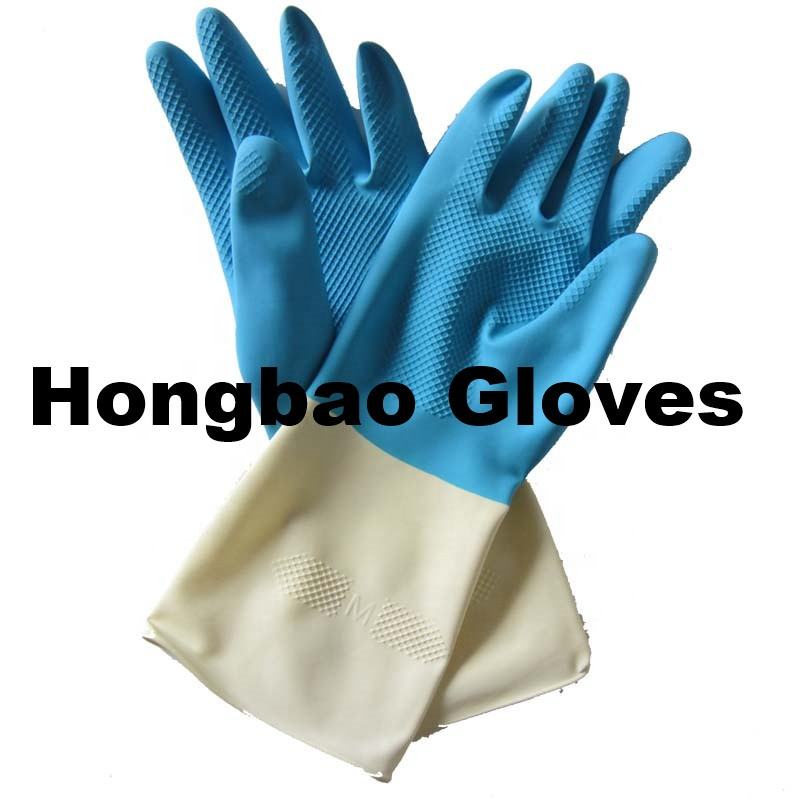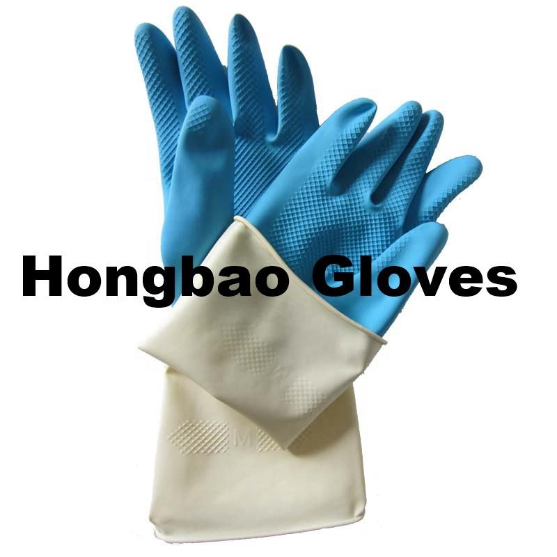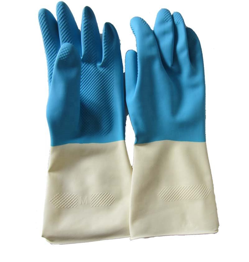 80g Fantaisie Haute Qualité Bleu et Blanc Double Couleur Cuisine Étanche Lavage Ménage Latex Main Caoutchouc Doux Confortable Gant