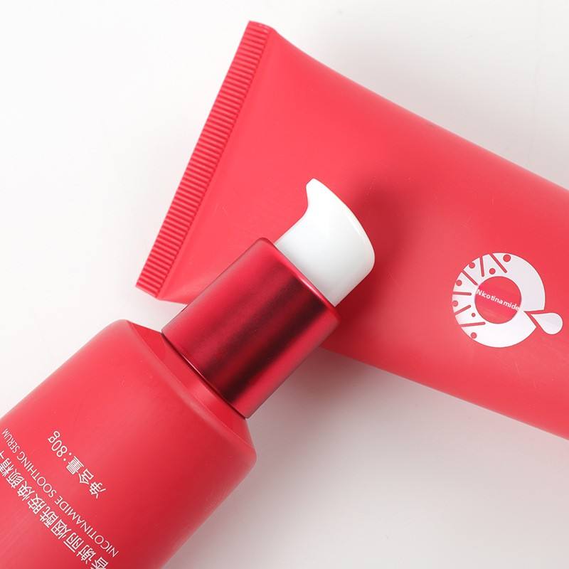 80g Red Soft Tube Dispensing Cosmetic Plastic Empty Bottle for Eye Cream with Vacuum Pump Head Press 40mm Diameter
