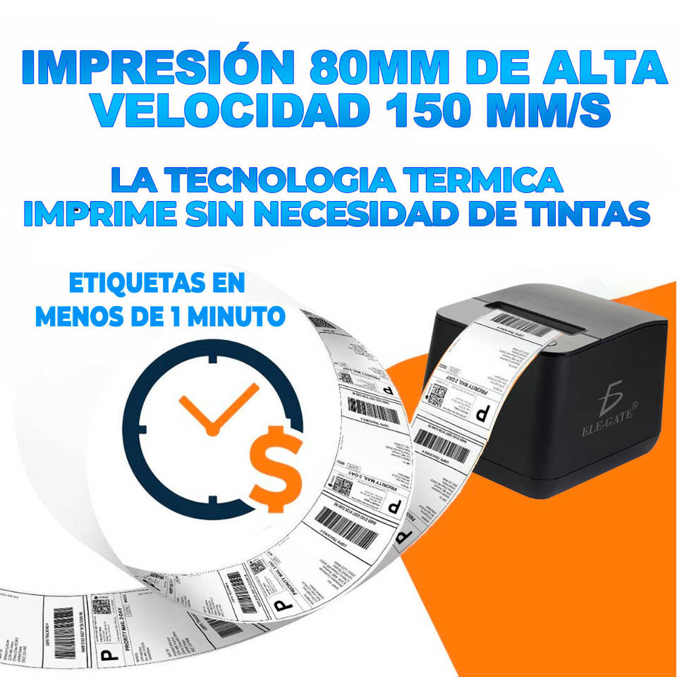 Imprimante thermique ELEGATE IM.06 80 mm avec découpe automatique des tickets, entrée USB RJ09, Mexique