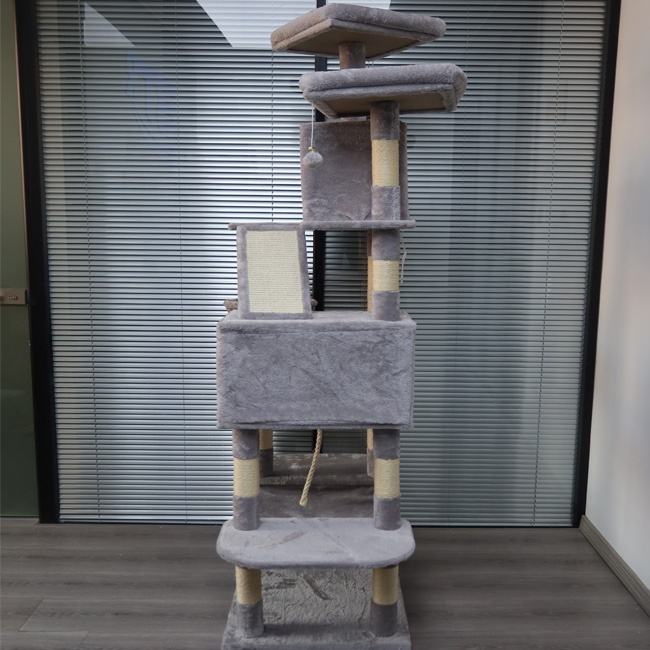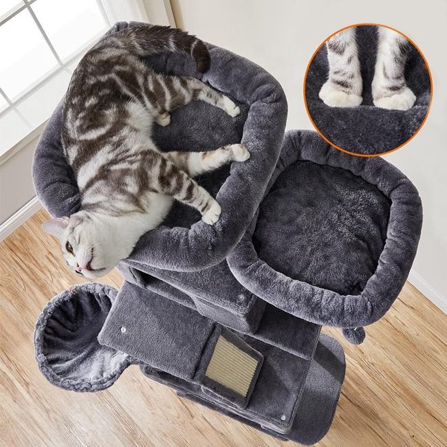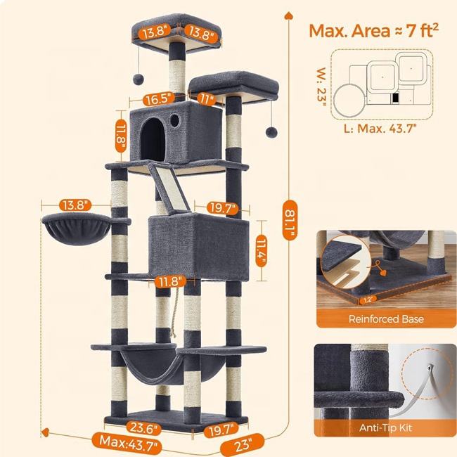 Arbre à chat d'intérieur multi-niveaux en peluche de 81,1 pouces avec hamac pour chats adultes de grande taille
