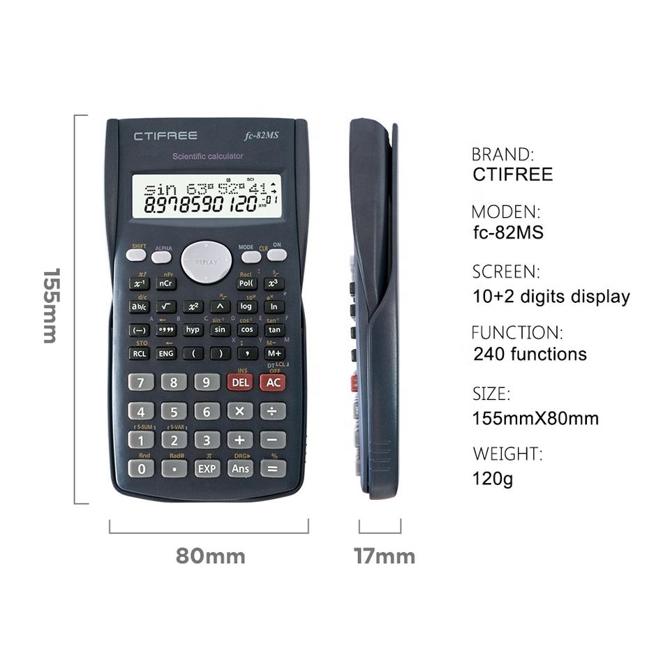 Calculatrice Scientifique Rose 82 MS, Calculatrice Scolaire Adaptée Collégiens, 240 Fonctions, Double Alimentation, Smart, Vente en Gros