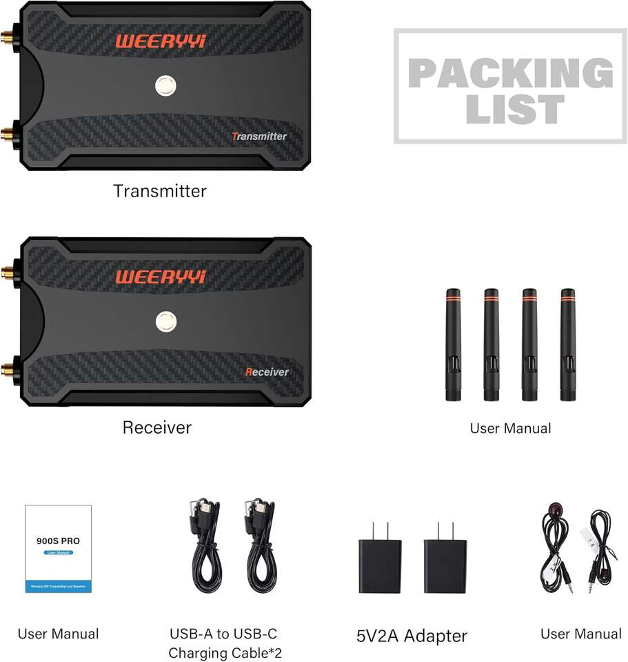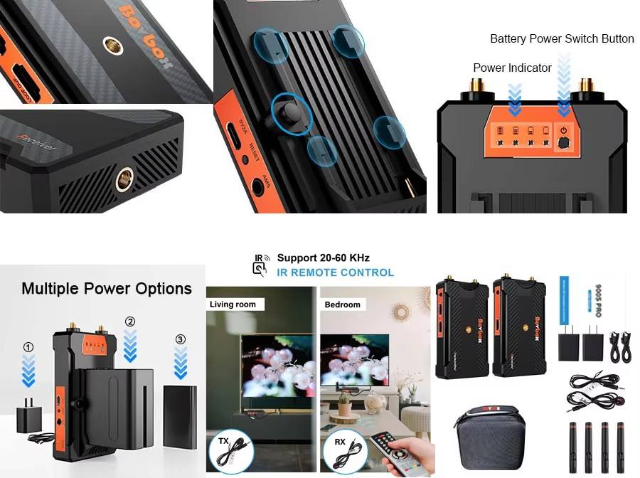Émetteur et récepteur vidéo sans fil HD MI 820FT/250m, prend en charge la batterie, parfait pour une utilisation avec un reflex numérique, un projecteur, des caméras, la diffusion en direct OBS