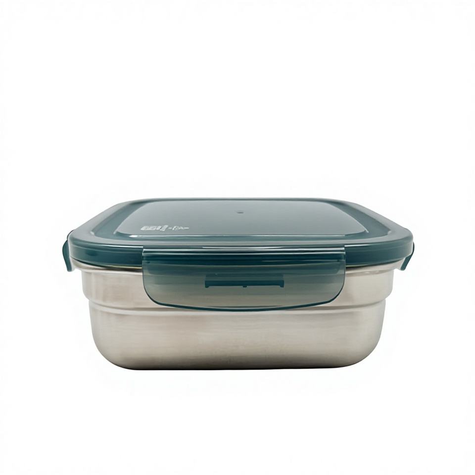Conteneur de stockage alimentaire carré en acier inoxydable de 820 ml, compatible micro-ondes, avec couvercle hermétique