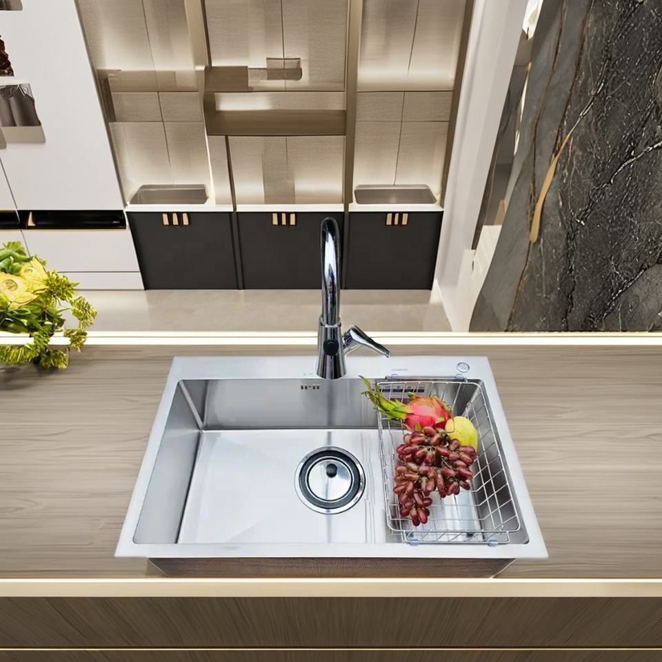 Évier de cuisine en acier inoxydable à bol unique fait à la main 8248 Nouveau design avec multifonction et deux trous directement de l'usine du Viet Nam