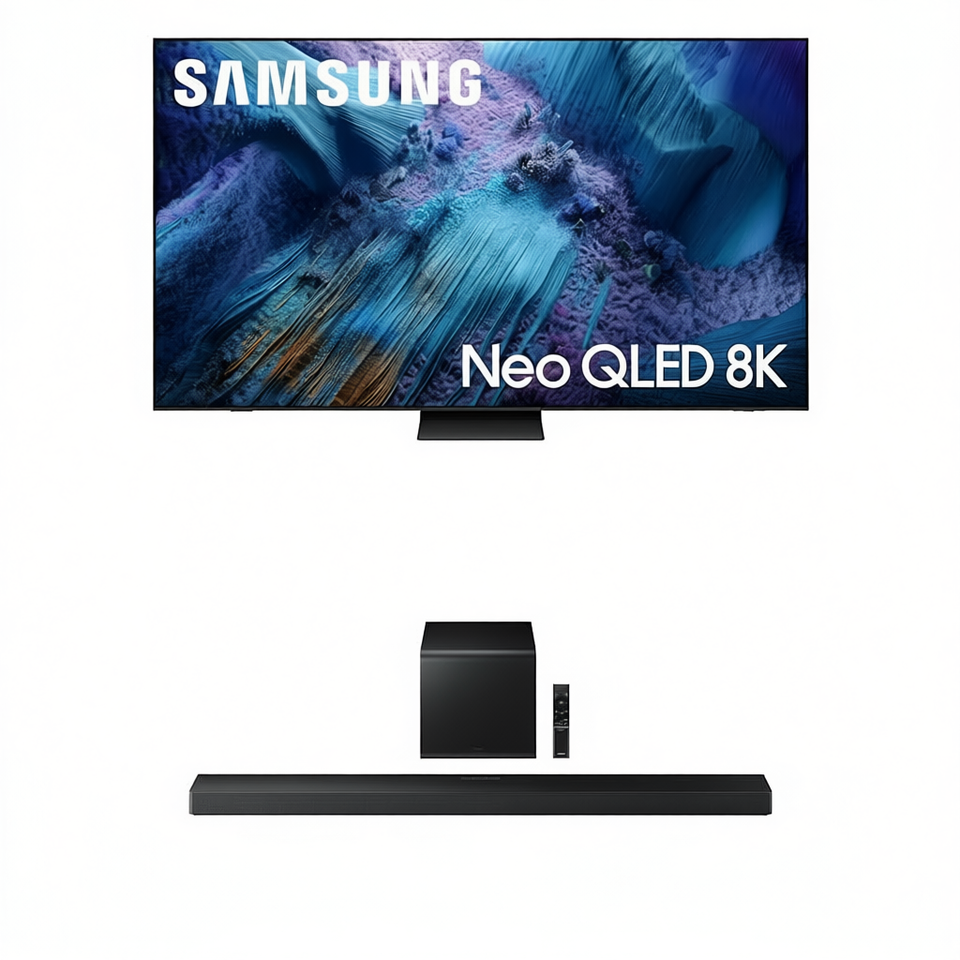 Téléviseur intelligent QLED Mini LED de 85 pouces avec barre de son 3.1.2 canaux, caisson de basses et résolution 8K