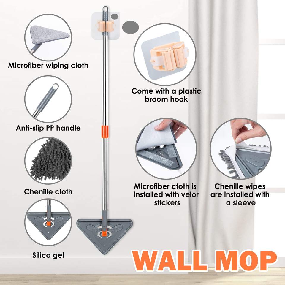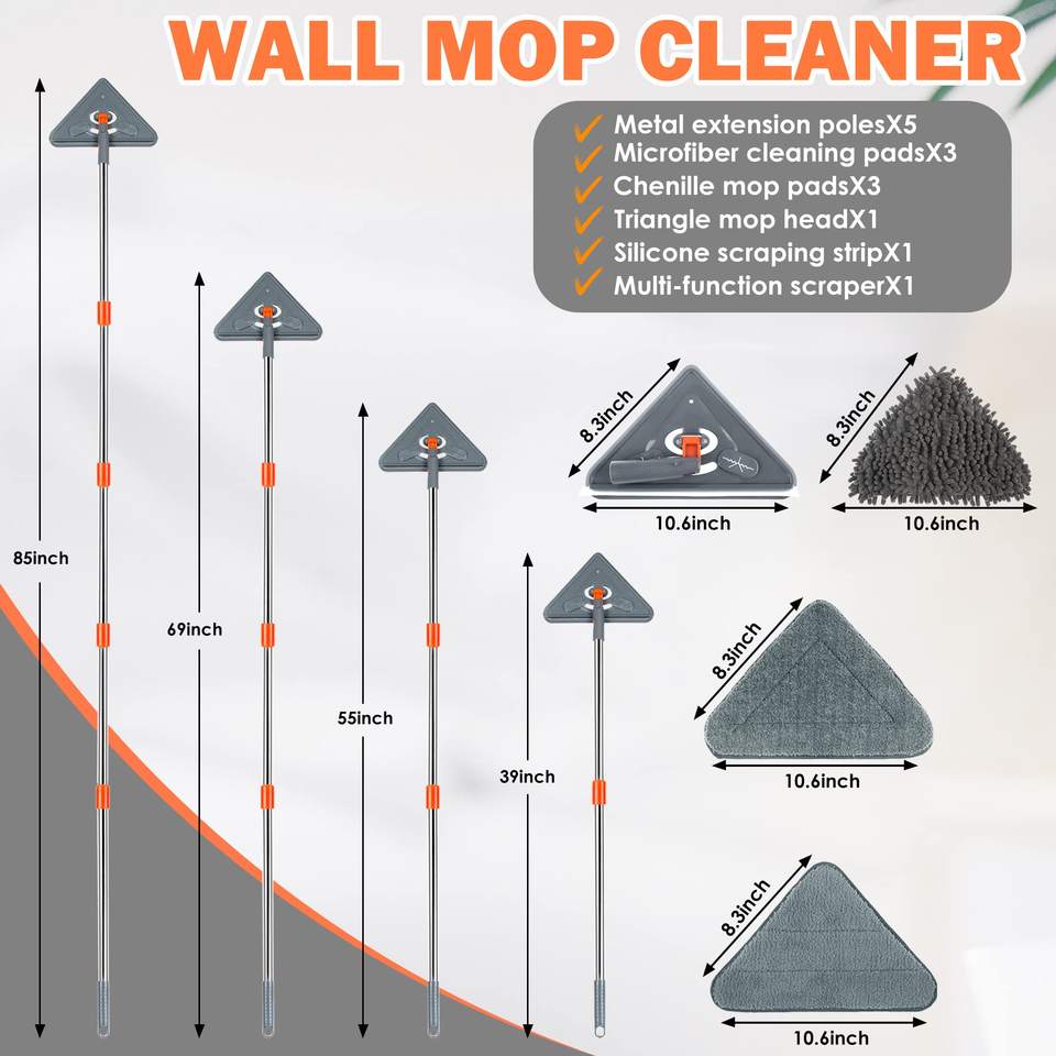 Nettoyeur de mur 85 pouces vadrouille avec longue poignée-Outil de nettoyage de plinthes pour laveuse murale Nettoyage de plafond Fenêtre Plancher