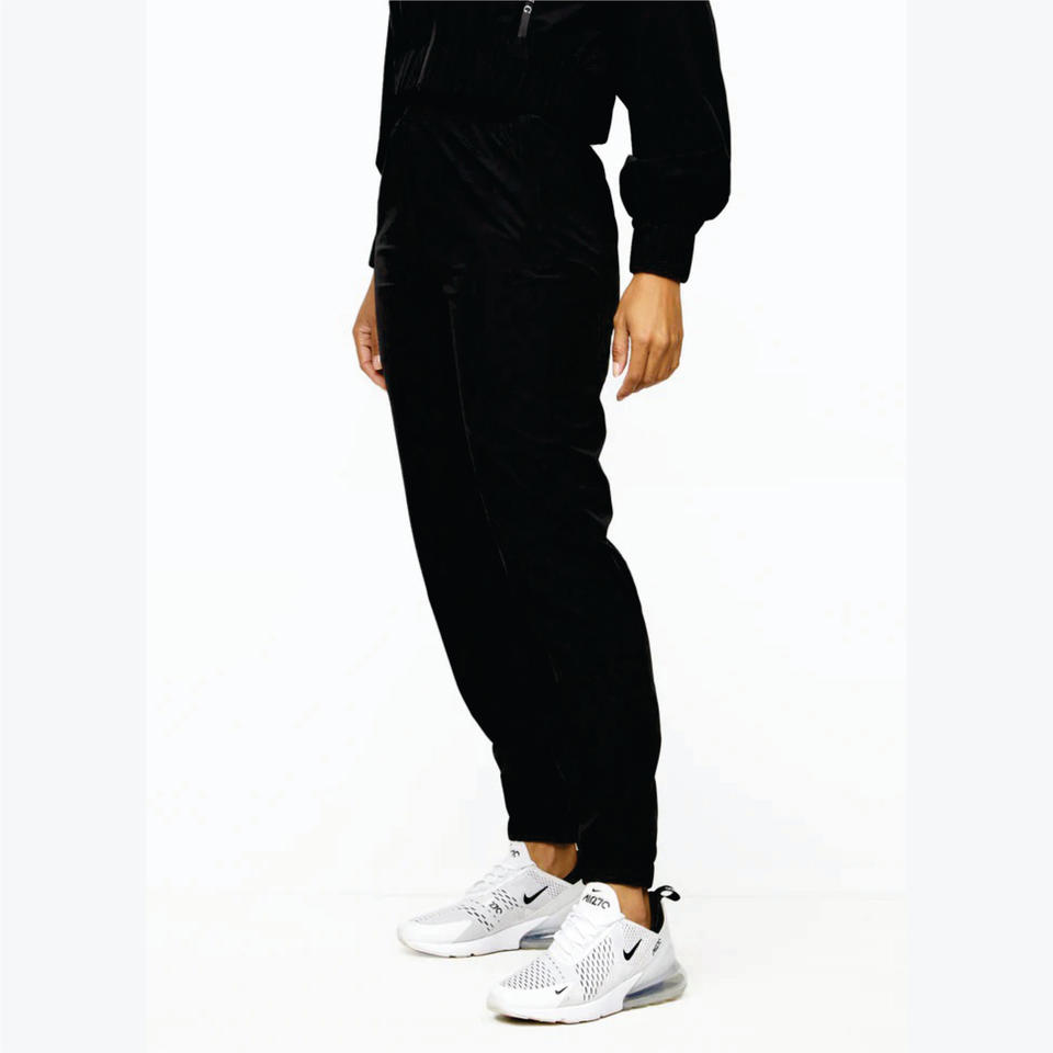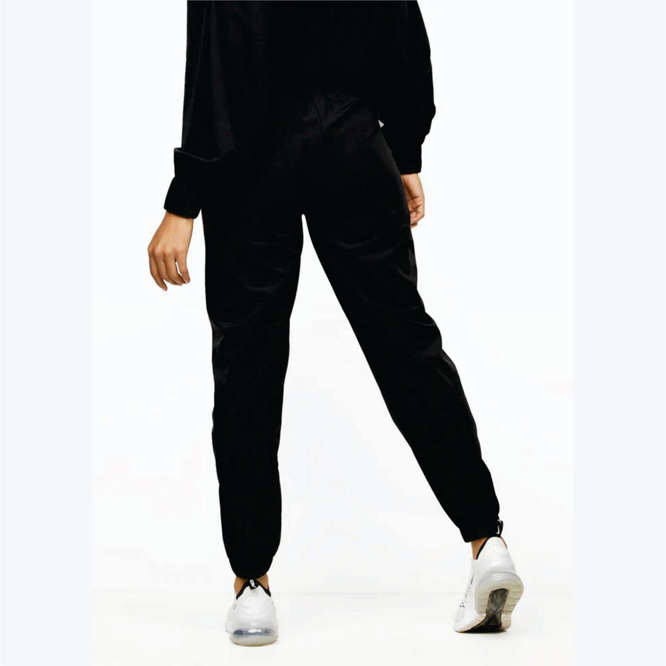 85% Polyamide 15% Elastane Woven Track Pant Black Women's Track Pant with 2 Concealed Zip Pockets and Custom Brand Details