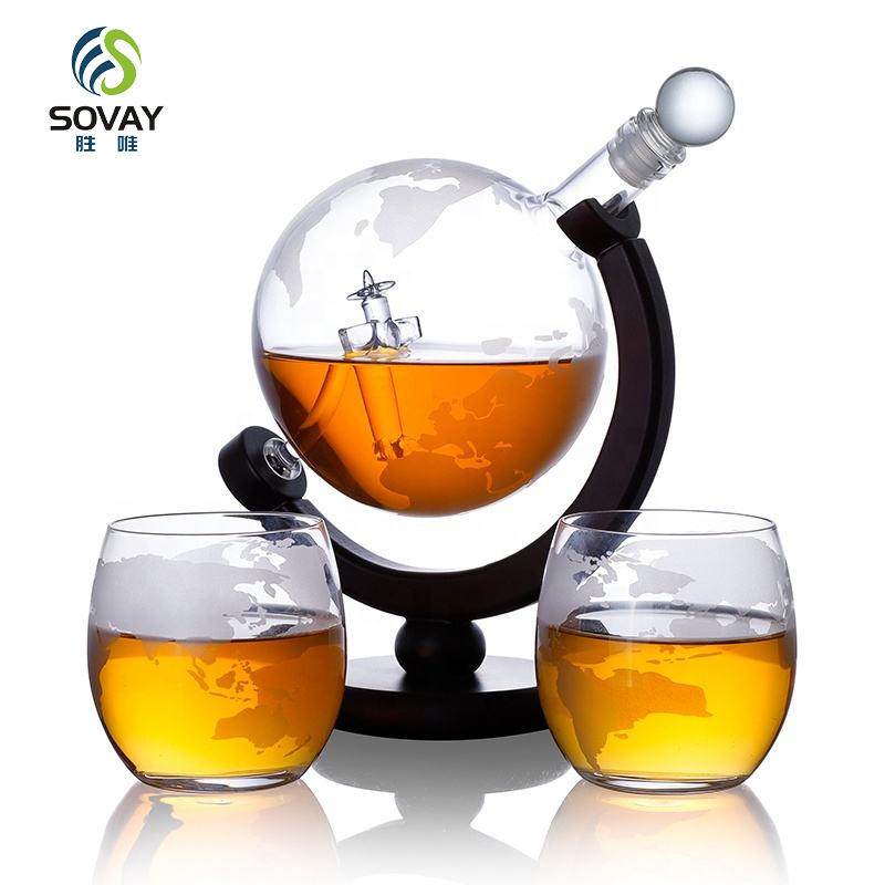 Ensemble de carafe sphérique pour whisky de 850 ml avec 2 verres à whisky sculptés, adapté pour le rhum, la tequila, la vodka, idéal pour les cadeaux