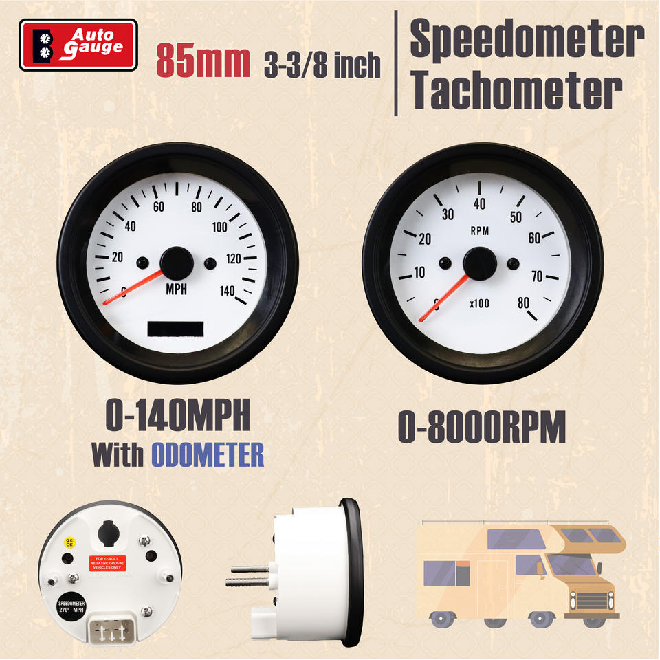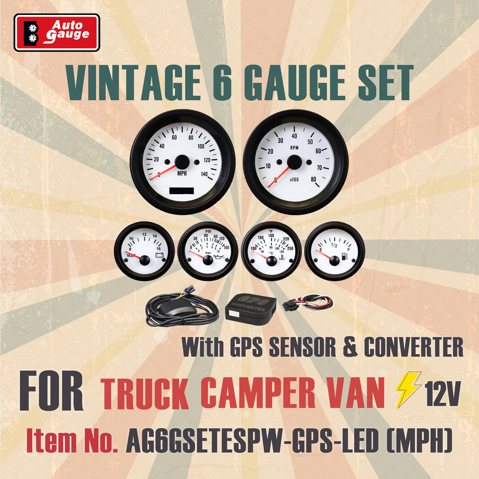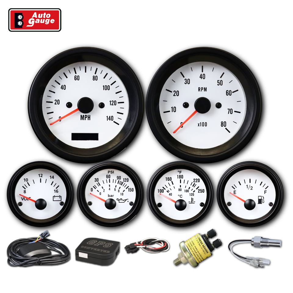 85mm 3-3/8 pouces 52mm 2-1/16 pouces GPS électrique Vintage 6 jeu de jauges 140MPH 12V façade blanche rétroéclairage blanc camion camping-car