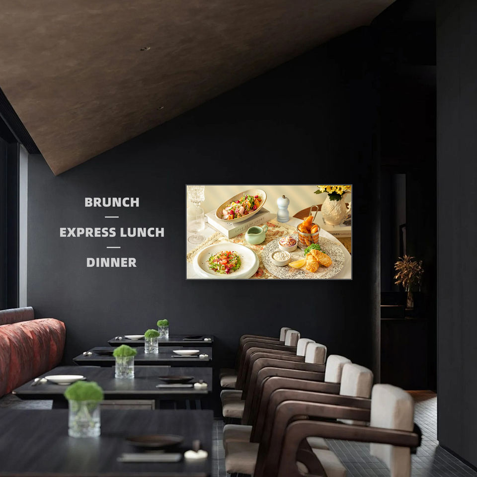 Écran LCD Commercial Numérique Ultra-Lumineux de 86, 75, 65, 55, 43 Pouces avec Animation et Cadre Ultra-Fin de 6,9 mm pour Affichage de Menu Slimline