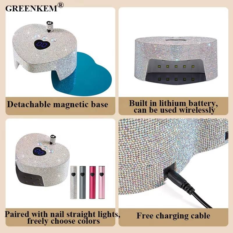 Lampe à Ongles LED UV Rechargeable au Design Coeur 86W Détection Intelligente Durcissement Rapide Portable Longue Batterie Full Diamond Lampe UV pour Ongles