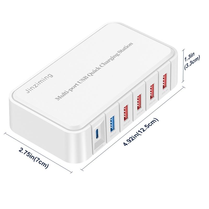 Station de charge rapide USB multiport 86W Hub 6 ports 20W PD USB C Bloc de charge pour iPhone iPad Tablet PC Samsung