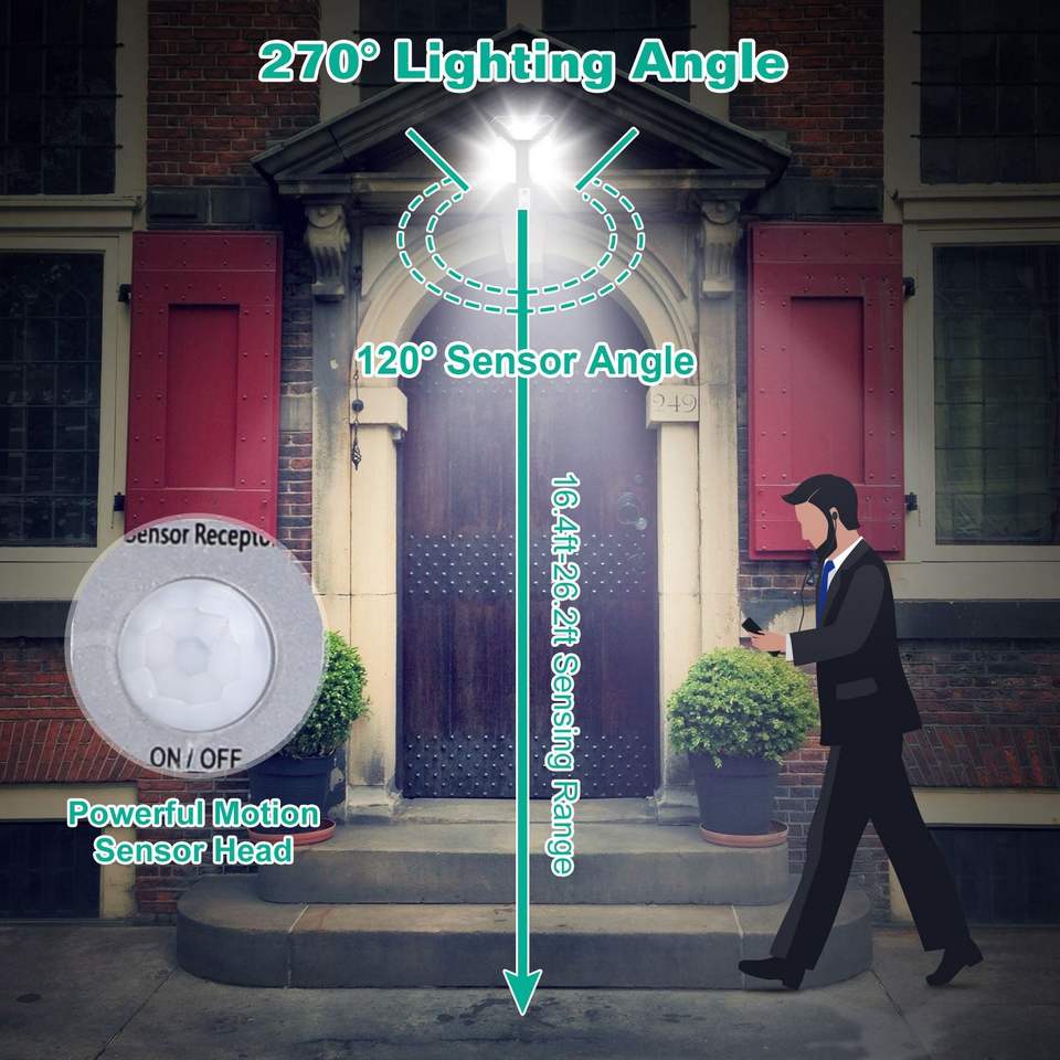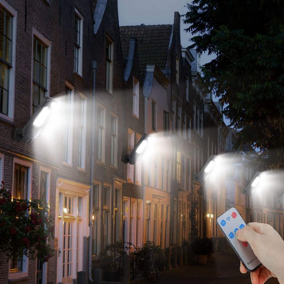 Lampe murale solaire extérieure à 87 LED avec capteur de mouvement PIR, télécommande, étanche IP45, lampes sans fil pour l'éclairage avant du garage