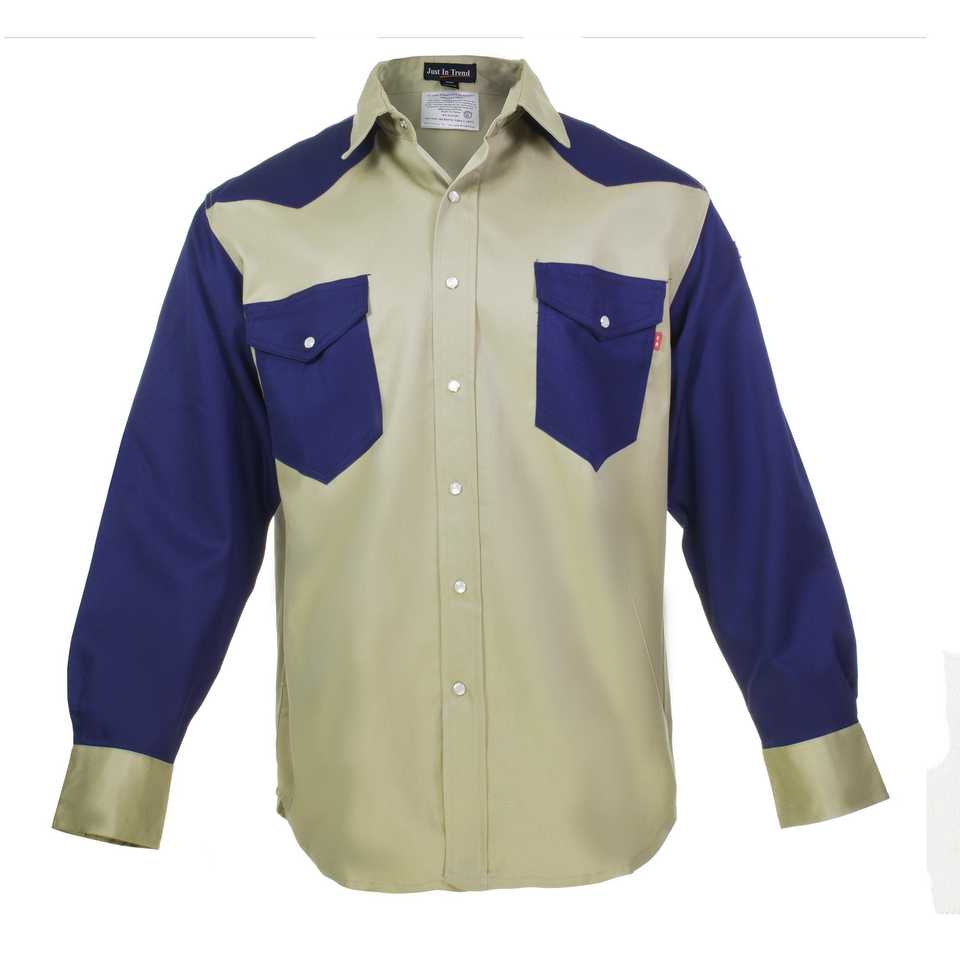 88/12 Chemise FR résistante aux flammes de style occidental deux tons (kaki/bleu foncé) vêtements de sécurité en 4X-grande taille