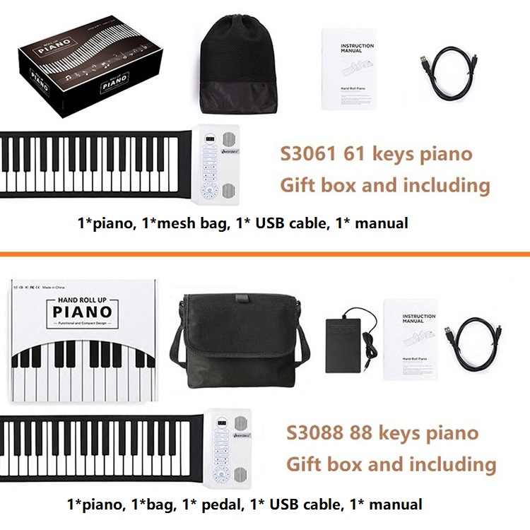1* piano, 1* manual, 1* usb cable, 1* mesh carry bag, 1* pedal