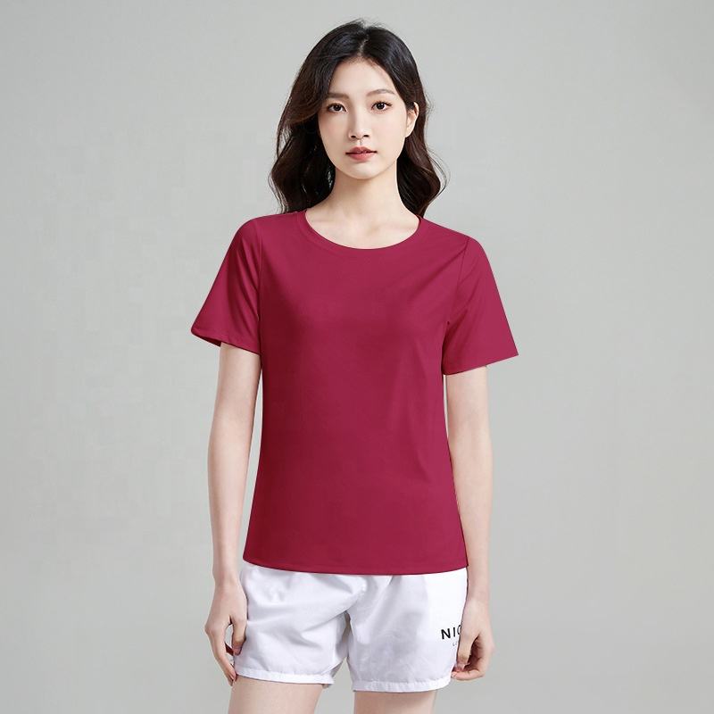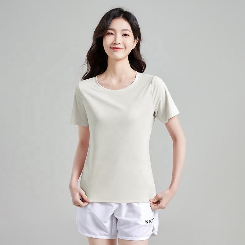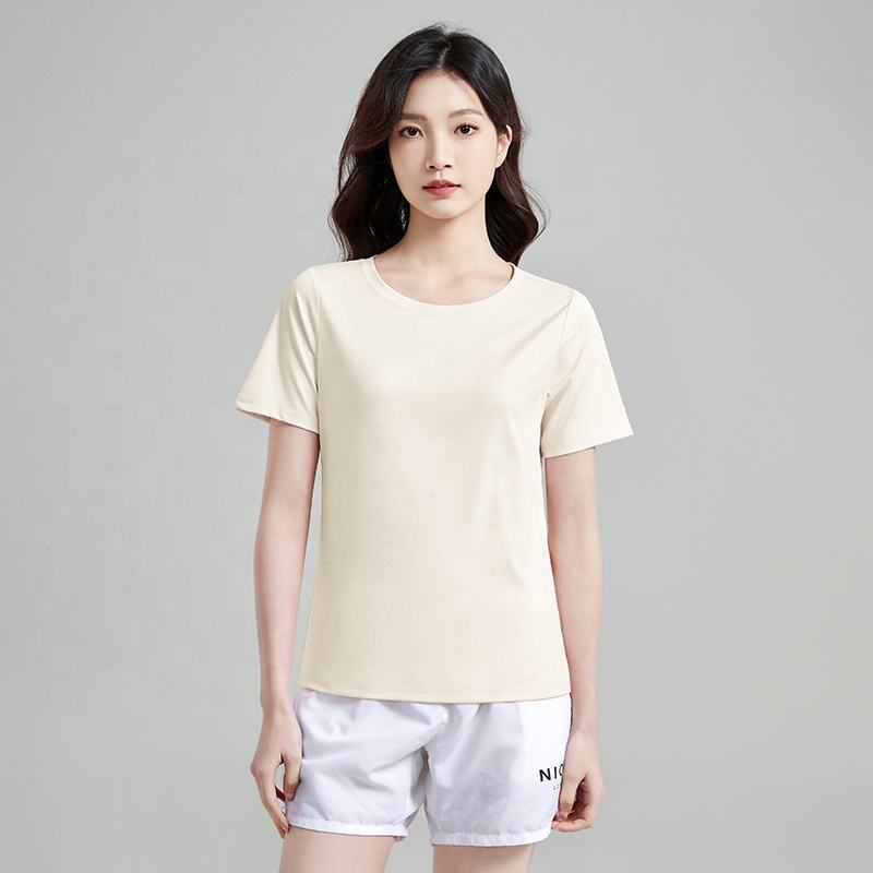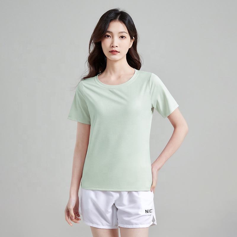 T-shirt de sport performant pour femme, 88 % polyester, 12 % élasthanne, séchage rapide, évacuation de l'humidité, manches courtes, idéal pour la gym