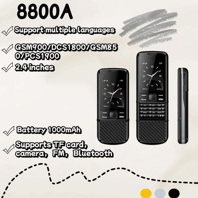 Téléphone portable 8800A à clapet, écran LED 2,4 pouces, double SIM, double veille, Bluetooth, carte TF, radio FM, batterie 1000 mAh, Type C, GSM mondial