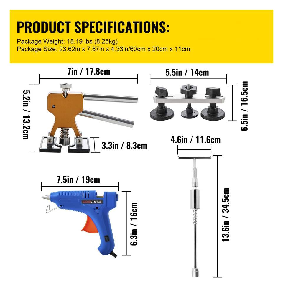Kit de réparation de bosses sans peinture 89 pièces, extracteur doré, outils de réparation de bosses de voiture, tiges de débosselage sans peinture, languettes de colle pour extraction de bosses
