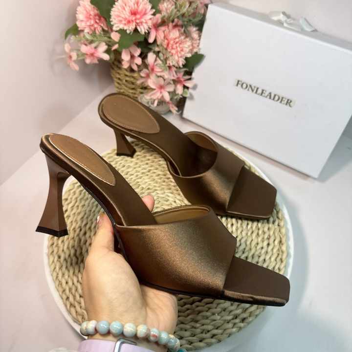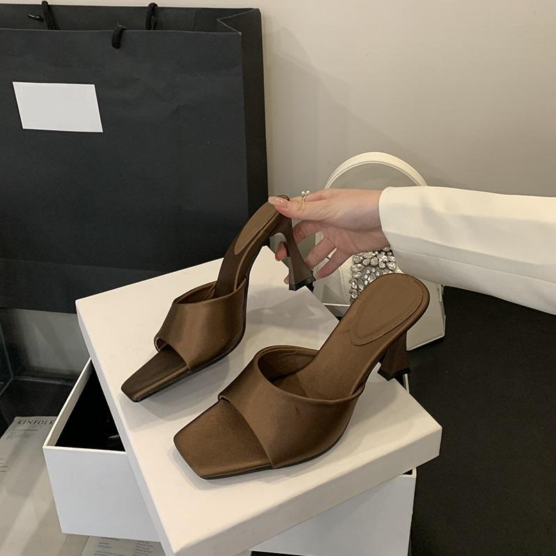 Mules à talons aiguilles en soie de 8 cm pour femmes, style simple, sandales d'été confortables pour l'extérieur, chaussures de soirée pour dames
