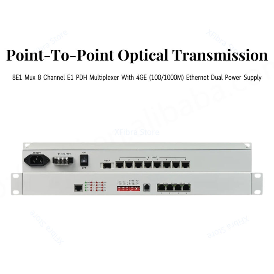 8E1 Multiplexeur Optica PDH Transmission optique point à point avec double alimentation Ethernet 4GE (100/1000M)