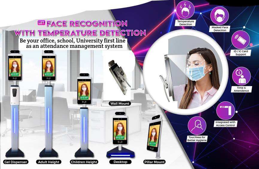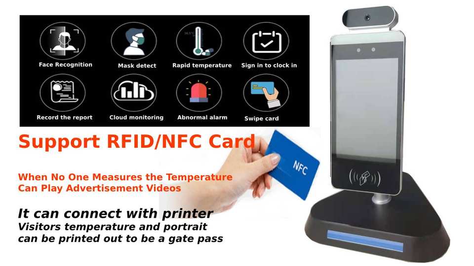 8 pouces visage reconnaissance automatique visage reconnaissance dans thermomètre