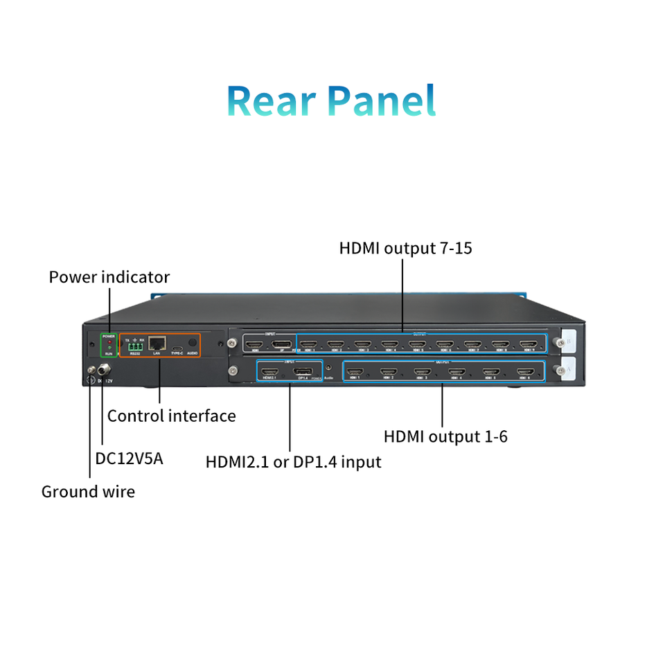 Caractéristique:1 entrée 8K, 15 sorties HDMI, traitement matériel, faible latence