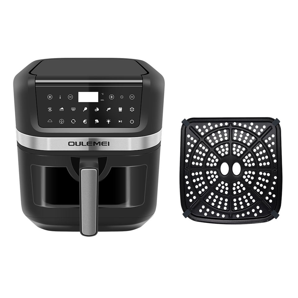 Friteuse à air de grande capacité en acier inoxydable de 8L avec écran tactile numérique intelligent Conception sans huile multi-usages Ménage moderne et facile à nettoyer