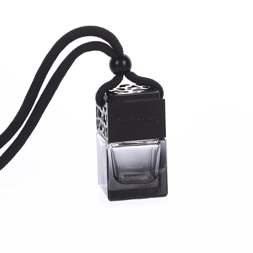 Diffuseur de parfum pour voiture transparent carré noir de 8 ml avec bouchon à vis en métal noir