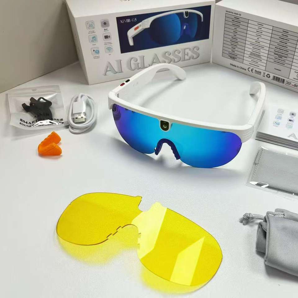 Lunettes Intelligentes 8MP 1080p 2K avec Caméra, Traduction IA, Reconnaissance, Assistant ChatGPT pour Cyclisme, Sport, Ski, Course à Pied et Activités de Plein Air