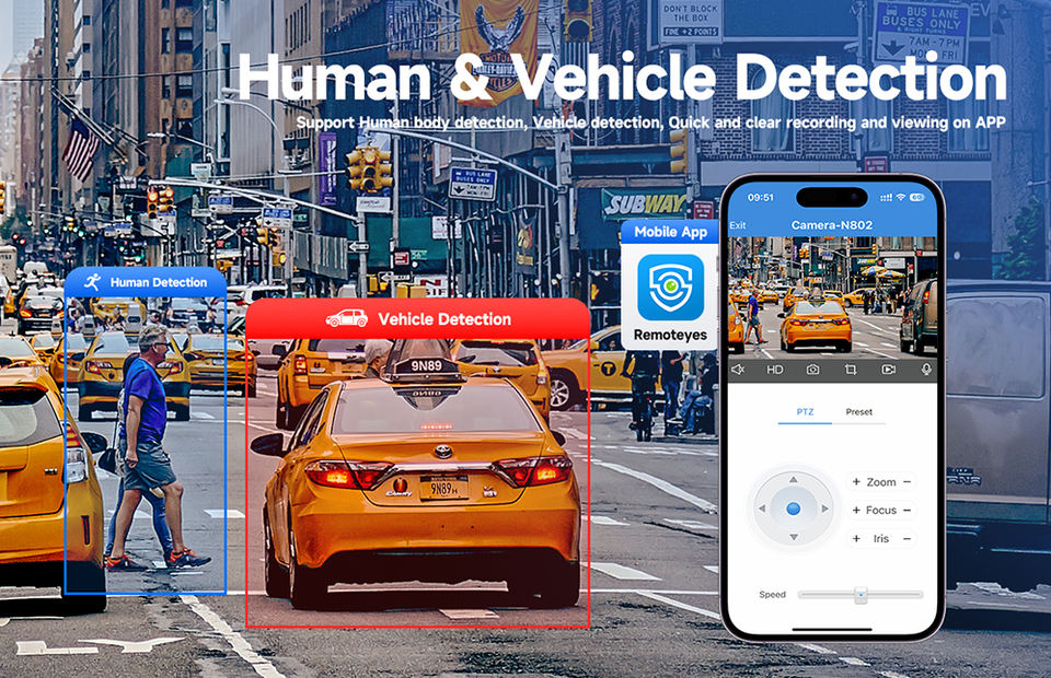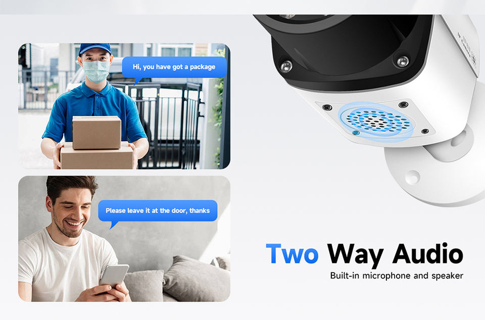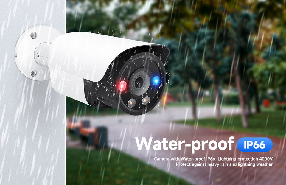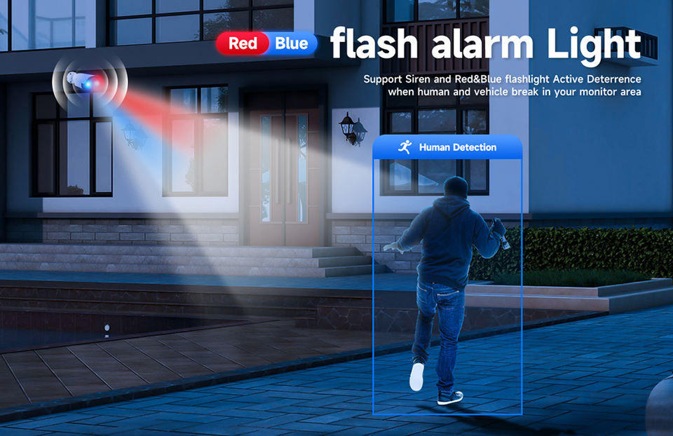 Caméra IP POE Bullet 8MP 4K avec détection IA des visages et des véhicules, audio bidirectionnel et alarme lumineuse rouge et bleue