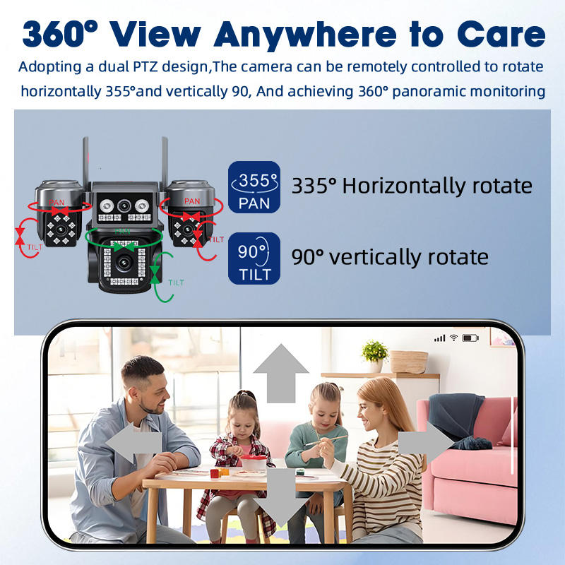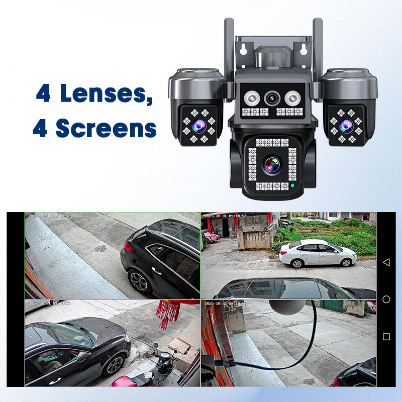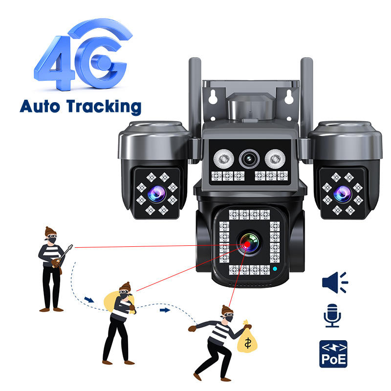 Caméra de sécurité domestique extérieure PTZ 8MP CMOS cylindrique IP66, 4G, 4 objectifs, couleur intégrale, H.265+, détection de mouvement