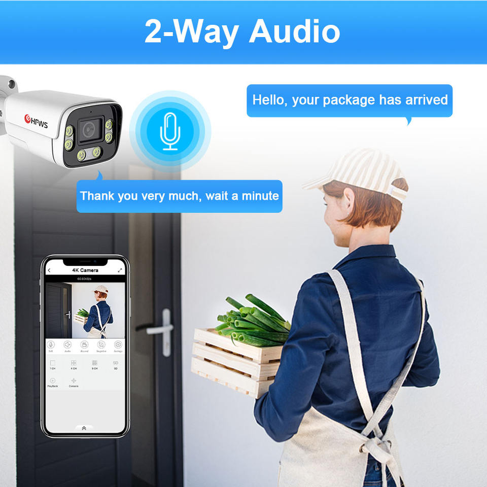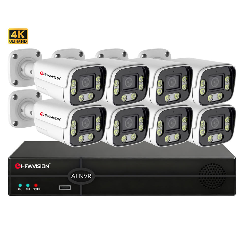 Caméra de sécurité intelligente 8MP Détection humaine/véhicule Alarme d'intrusion Alerte de loisir Système de caméra IP 8CH H265 Audio bidirectionnel Port RJ45