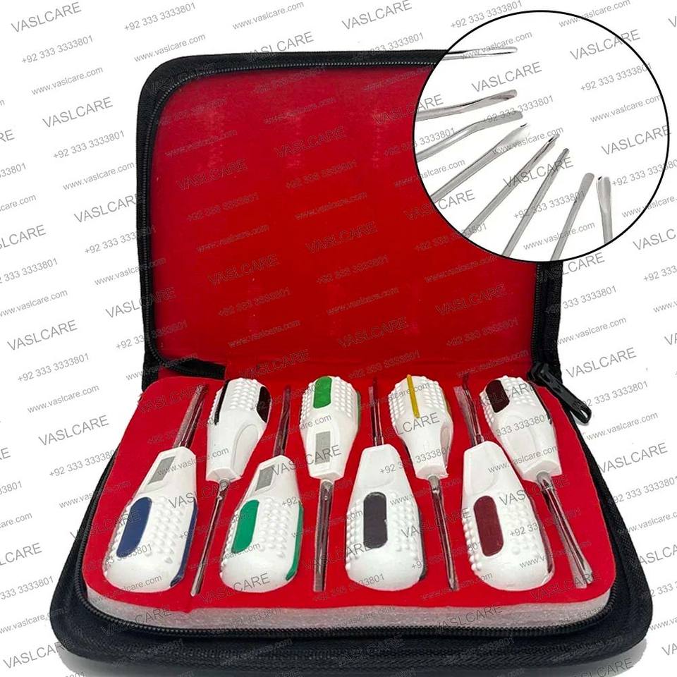 Ensemble de 8 Élévateurs Dentaires Manuels de Qualité Supérieure Élévateur d'Extraction Dentaire avec Poignée en Silicone Certifié CE par Vaslcare