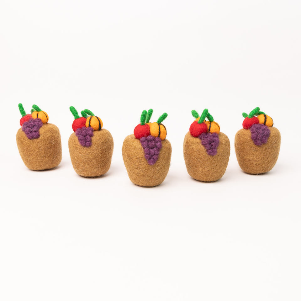 Panier de fruits de Thanksgiving en feutre de laine de 8cm semblant jouer décorations de nourriture et d'arbre pour la décoration de table et la fête de Thanksgiving