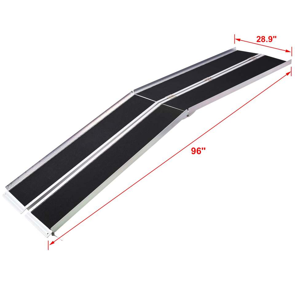 Rampe pliable portable en aluminium de 8 pieds, capacité de 600 livres, avec surface antidérapante, deux pièces séparées, dispositif d'assistance