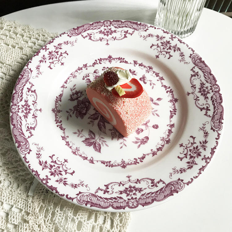 8 pouces. Assiette à dîner en céramique à motif floral vintage anglais, trois couleurs, assiette en céramique