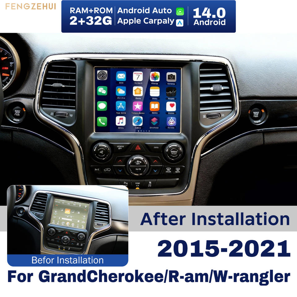 Autoradio Android 14 avec écran tactile de 8 pouces pour Grand Cherokee/R-am/W-rangler 2015-2021, Carplay, 32G, Android Auto, GPS, lecteur de navigation