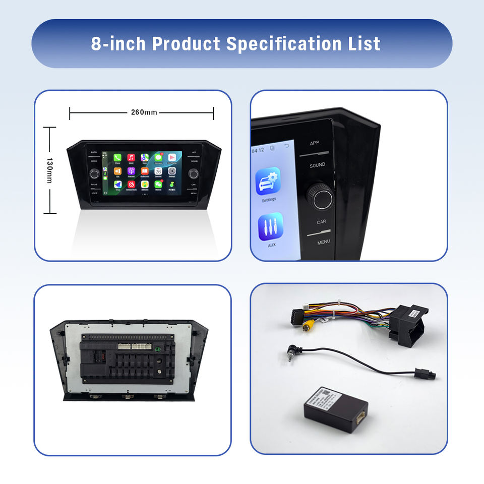 Autoradio DVD Android 8 pouces pour Volkswagen avec CarPlay sans fil, Android Auto, navigation multimédia améliorée