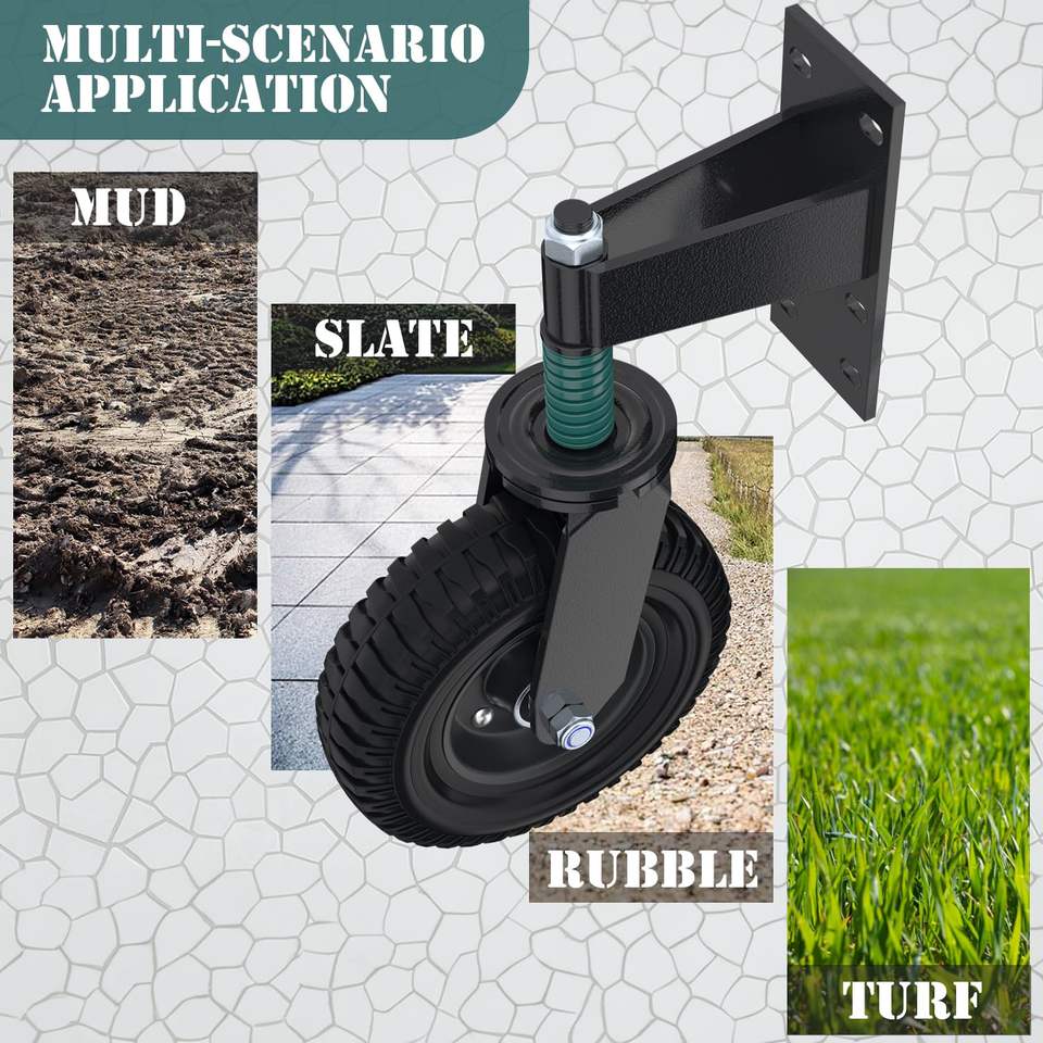 Roue de porte de 8 pouces pour porte en tube métallique Porte en bois Capacité de 600lb Roulettes à ressort absorbant les chocs pour porte coulissante