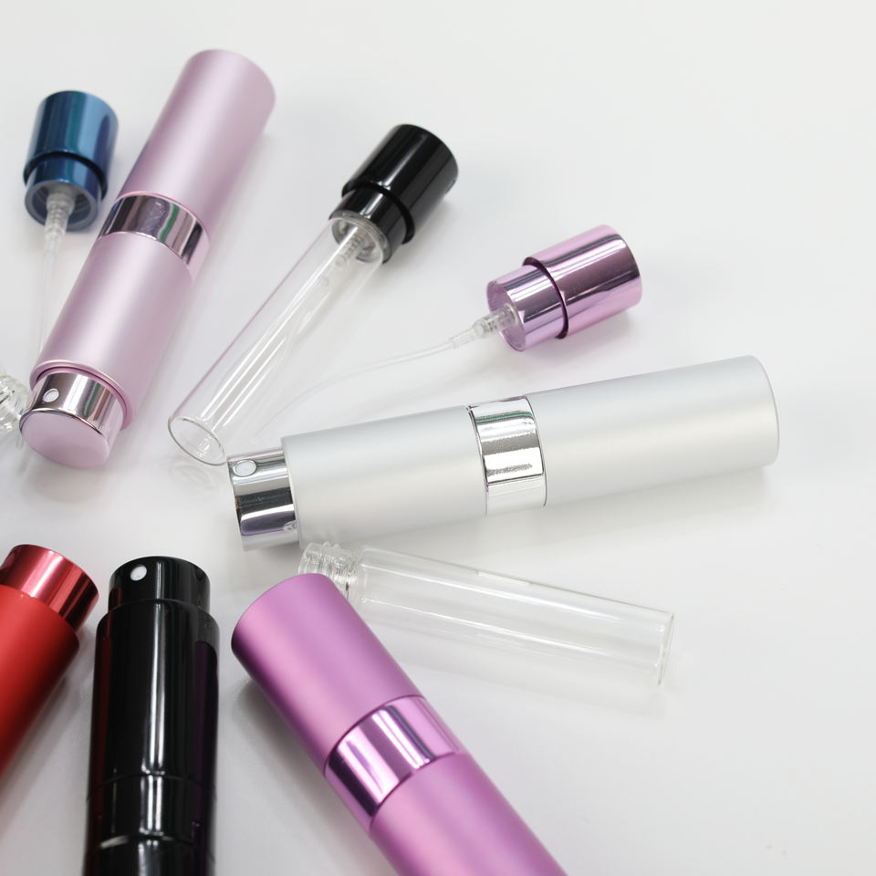 Atomiseur de parfum portable de luxe en aluminium rechargeable de 8 ml et 10 ml avec logo personnalisé et design rotatif