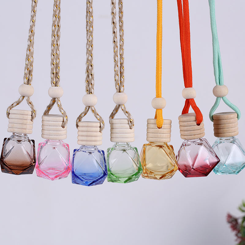 Flacon de parfum suspendu rechargeable de 8 ml, en forme de losange, pour voiture, diffuseur d'arômes en verre avec couvercle en bois