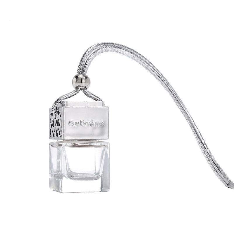 Flacon diffuseur de parfum et d'aromathérapie en verre carré vide rechargeable de 8 ml, à suspendre dans la voiture, avec bouchon métallique argenté
