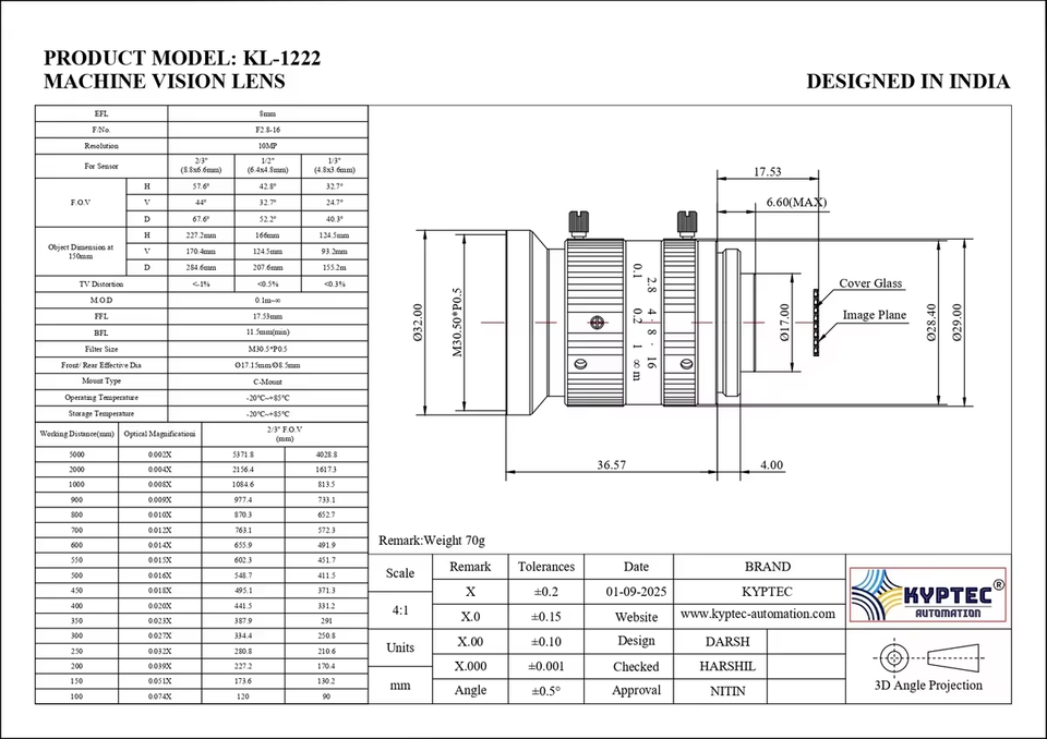 Objectif de vision industrielle 8 mm 10 MP pour caméras industrielles 2/3 pouces, imagerie haute résolution pour l'inspection et le contrôle qualité